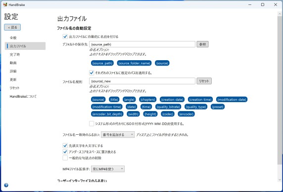 先日のブログで書いた通り、Switch 2でキャプチャーした動画は、手持ちの動画編集ソフト「Adobe Premiere Elements 14」で取り込もうとするとエラーが発生してしまいます。これは、Switch 2の動画のコーデックがH.265なのに対して、Adobe Premiere Elements 14がH.264しか対応していないためです。Adobe Premiere Elements 14は10年前のソフトなので、仕方ないと言えば仕方ないのですが、AdobeのソフトはElementsも含めてサブスク形式になってしまったため、新しいバージョンを購入するのは躊躇してしまいました。そのため、今後もAdobe Premiere Elements 14を継続利用すべく、動画ファイル一括変換ソフト「HandBrake」を導入してみました。HandBrakeは動画ファイルをウィンドウ内にドラッグ&ドロップして「エンコード」ボタンをクリックするだけで、動画のコーデックをH.265からH.264に変換してくれます。さらには複数ファイルの一括変換も可能ですし、映像についてはコーデックだけでなくフレームレートや画質等、音声についてもコーデックや音質(ビットレート)等も選択して変換ことができます。 出力ファイルのパスやファイル名なども、環境変数を用いて柔軟に設定することができます。以下、バックアップがてら、私のPCの設定の出力ファイル設定をアップしておきます。 ![]() WindowsPC関連記事(リンク一覧): HandBrake - 動画ファイル一括変換ソフト / EWiN ブルートゥース+2.4G USB無線両対応タッチパッド搭載折りたたみキーボード / 【2025新登場】ProtoArc Bluetooth 折りたたみ式キーボード XK01 / ブラザー(Brother)複合機 MFC-J4950DN / 息子のPCを新調 - GIGABYTE ゲーミングノート GAMING A16 CMHI2JP894SH / ...(記事連続表示)
